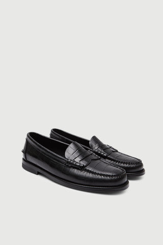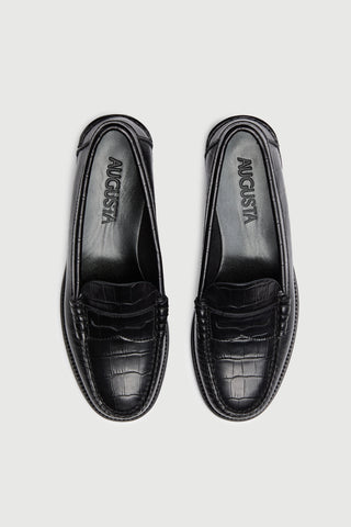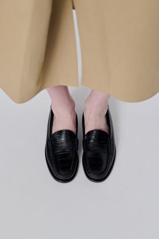 Zoe Loafers in Croc-effect Black Leather